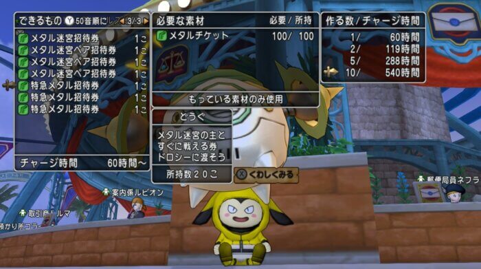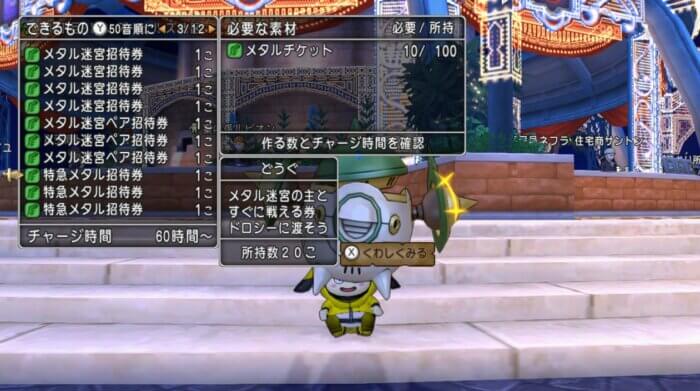 メタルチケットは10枚で「メタル迷宮招待券orメタル迷宮ペア招待券or特急メタル招待券」を作れますが、どれも60時間かかるんですよね><