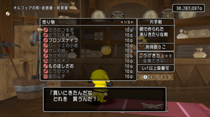 売ってある装備で欲しいものはないし、ほぼ全て旅人バザーでも購入することができます。