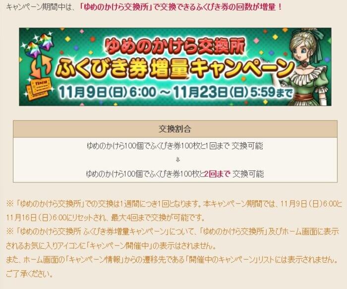 キャンペーン4 ~ ゆめのかけら交換所 ふくびき券増量キャンペーン ~