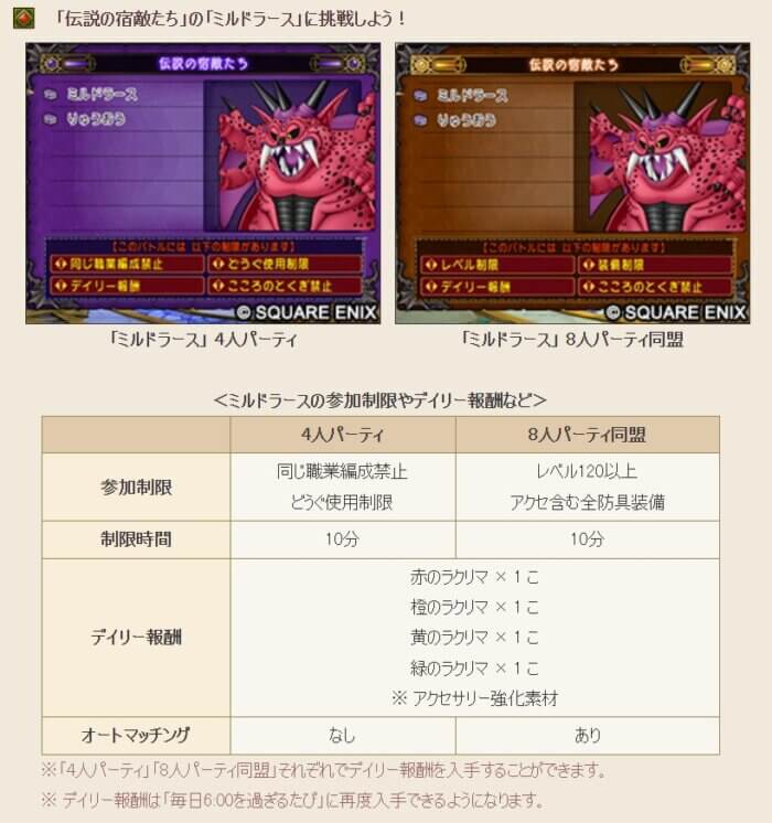 • 8人のパーティ同盟バトルで「ミルドラース」が使用する「ジャッジメントフレア」を「ジャッジメントサイン」に変更