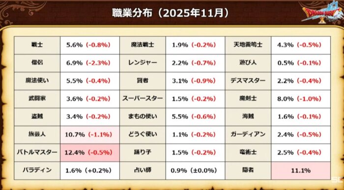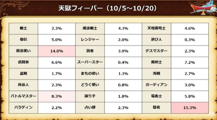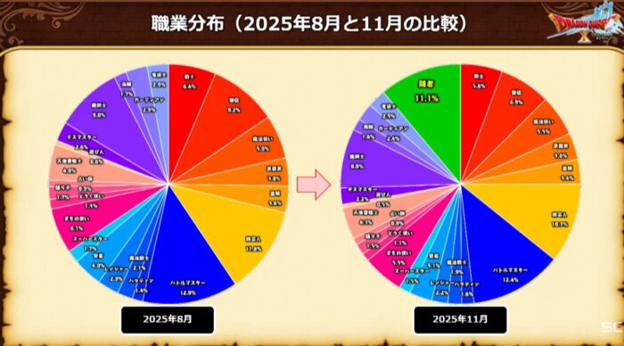 最近行われた「超ドラゴンクエストXTV #55」で職業分布が公開されました!