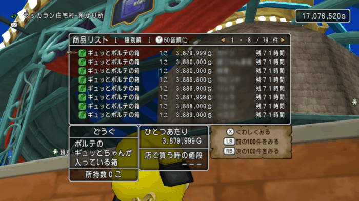 ギュッとポルテ・ギュッとお師匠様のバザー価格は約380万Gでした!