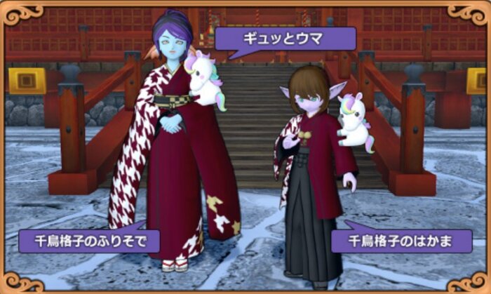 ギュッとウマ・千鳥格子のはかま・千鳥格子のふりそで」