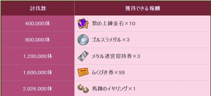 ※期間中に「スライムかがみもち」または「メタルかがみもち」を1匹以上倒さないと報酬がもらえないので注意!