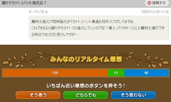 「魔剣士のタナトスハント強化で火力を出してるが、これができるなら踊り子のタナトスも強化していいのでは?」という提案です。
