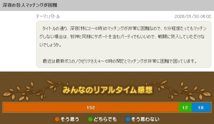 ラクリマはたくさん必要なので、ぜひどの時間でもマッチングできるようにしてほしいです!