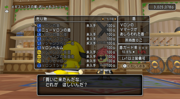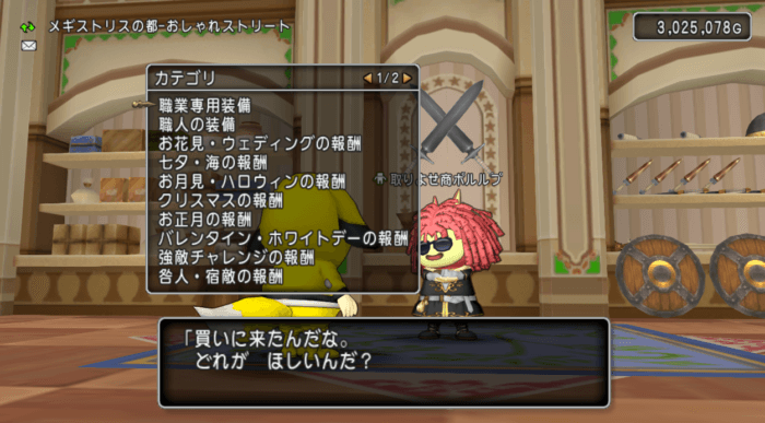 そして装備の種類が多く、並びが五十音順じゃないのでそれも探しにくいです!