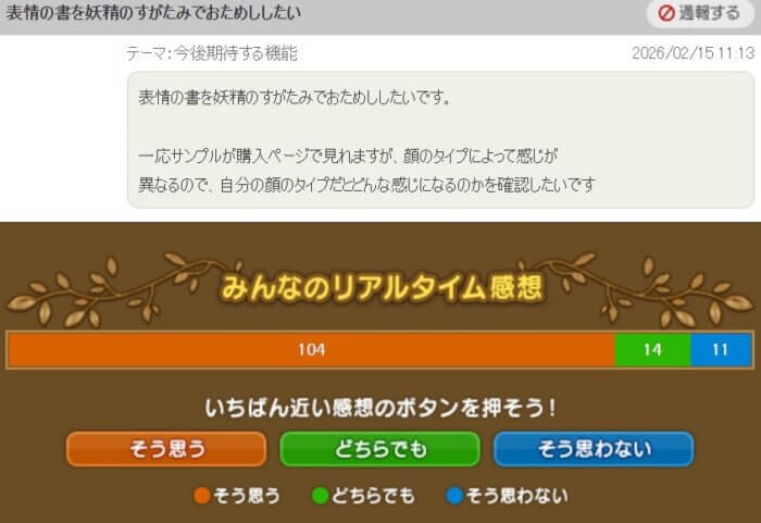 表情の書の妖精の姿見が求められている!?