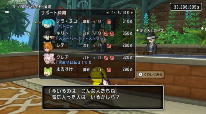 酒場でサポート仲間の種族を絞り込み機能が求められている!?