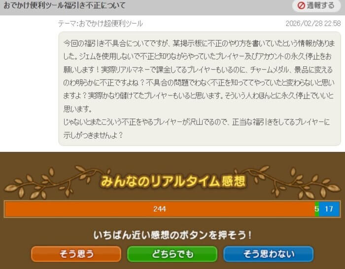 ふくびきバグの不正利用者に厳正なるペナルティが求められている!?