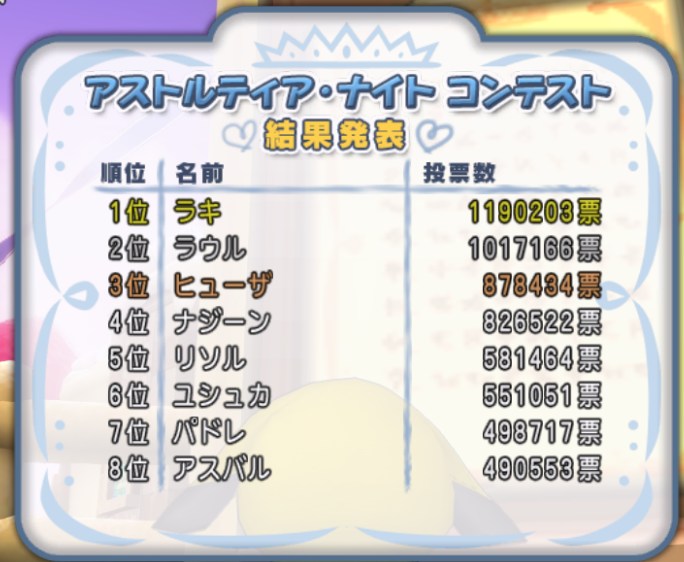 第13回アストルティア・ナイトコンテストの順位です!