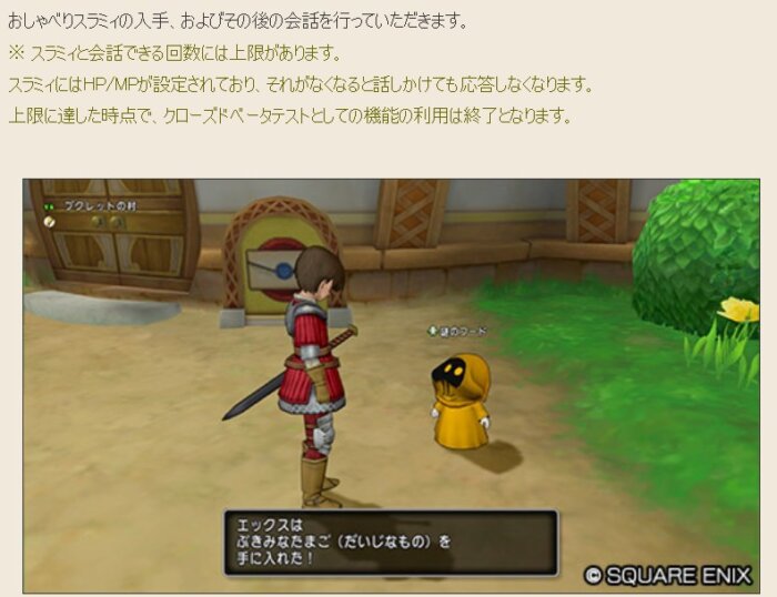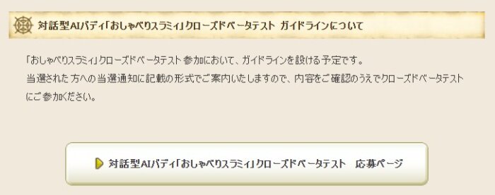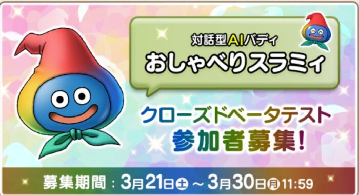 冒険者の広場の対話型AIバディ「おしゃべりスラミィ」クローズドベータテスト応募ページから応募することができます!