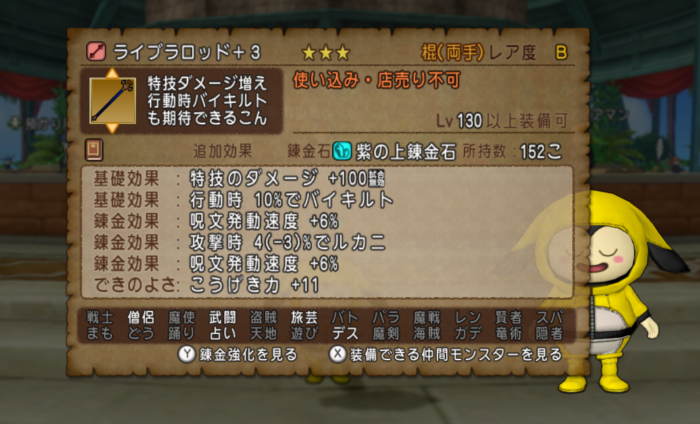 そして、棍僧侶がバギ呪文に特化したスキルに変更されましたが、現状は肝心の棍に呪文発動速度がパルプンテでしかつけられないんですよね><