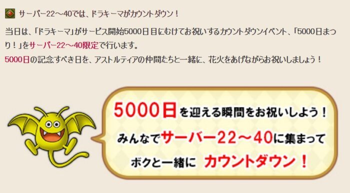 みんなと「ドラキーマ」と一緒にサービス開始5000日目にむけてお祝いするカウントダウンイベントです!