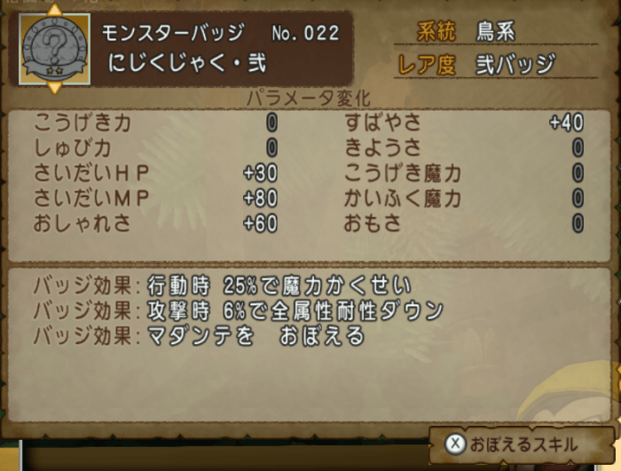 提案にある、にじくじゃくのバッジをつけると、毎回マダンテを発動してしまうのはさすがに酷いので、バッジもオン・オフ設定を追加してほしいですね!