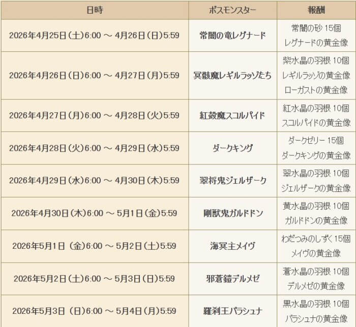 今回は新報酬「ボスモンスターの黄金像」が追加されています!